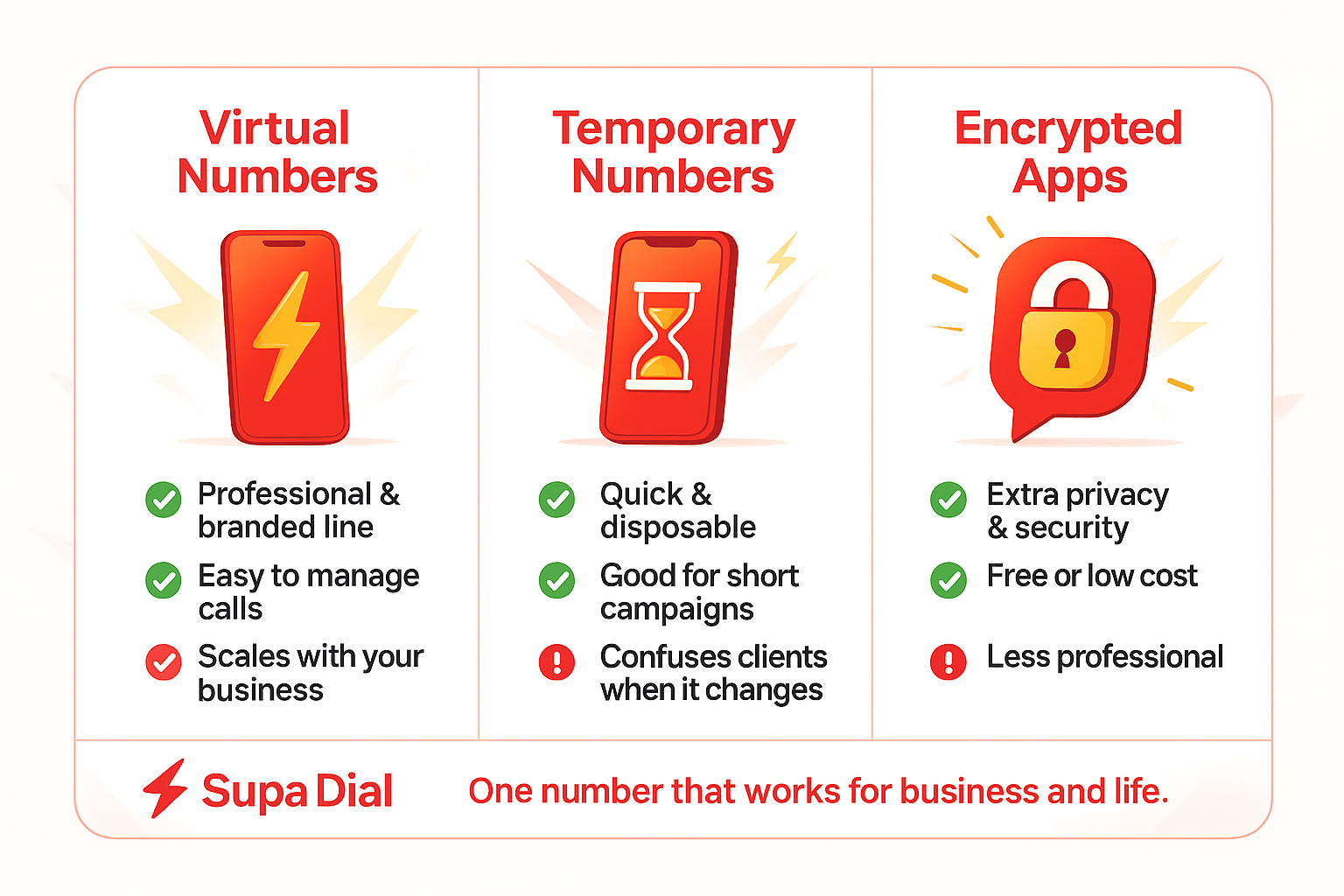 By attaching your Supa Dial second line to these apps, you can extend that protection to client calls and texts, keeping conversations separate from your personal phone while ensuring professional confidentiality.